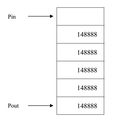 在上圖中,有一個初始化了的隊列,共有 6 個單元,初始數據為 148888,當發生的返回值不為 0 時,將 205429 賦給 Pin,并使隊列移動一個單元。在 Pout 處檢測被推出的數據,當為 148888 時不做動作,當為 205429 時即認為非法。