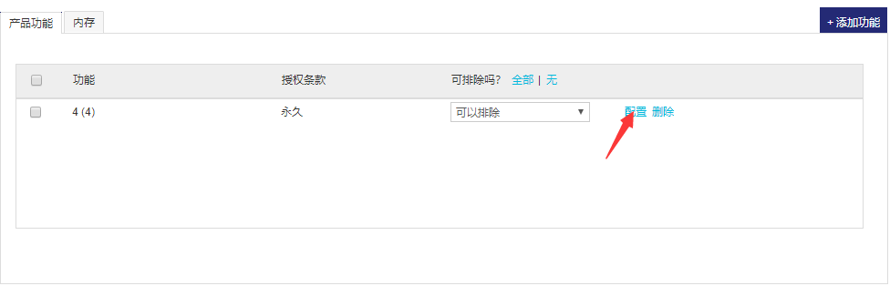 2、定義產品---把這個功能ID與開發商的軟件名稱關聯,包括設置時間、次數等限制;