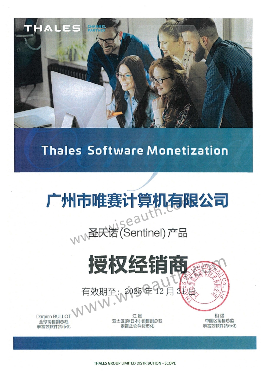 廣州市唯賽計算機有限公司成立于2003年,公司致力于為軟件開發商提供軟件保護解決方案和為企業提供企業管理信息安全的解決方案,是法國泰雷茲(THALES)和賽孚耐(SAFENET)公司中國區核心的代理商。公司主要經營的產品有軟件加密狗、圣天諾加密鎖等各類 軟件貨幣化解決方案;u-key身份認證令牌;物聯網軟件 嵌入式解決方案以及泰雷茲公司的全系列網絡安全產品。