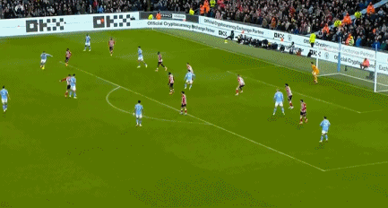 第22分鐘,穆杰萊右路弧線球斜塞,傳得恰到好處,伊西多爾禁區(qū)內(nèi)單挑曼城后防線,小角度抽射被魯本-迪亞斯封堵。